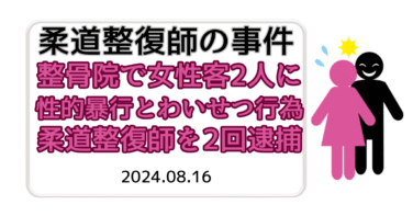 各種メディアから配信された柔道整復師が関わる報道です。配信元で実名・施術所名が明記されていても当サイトでは伏せて引用する場合があります。報道2025年4月に大手メディアで報道された柔道整復師によるストーカー行為です。勤務先の整骨院に通う23...